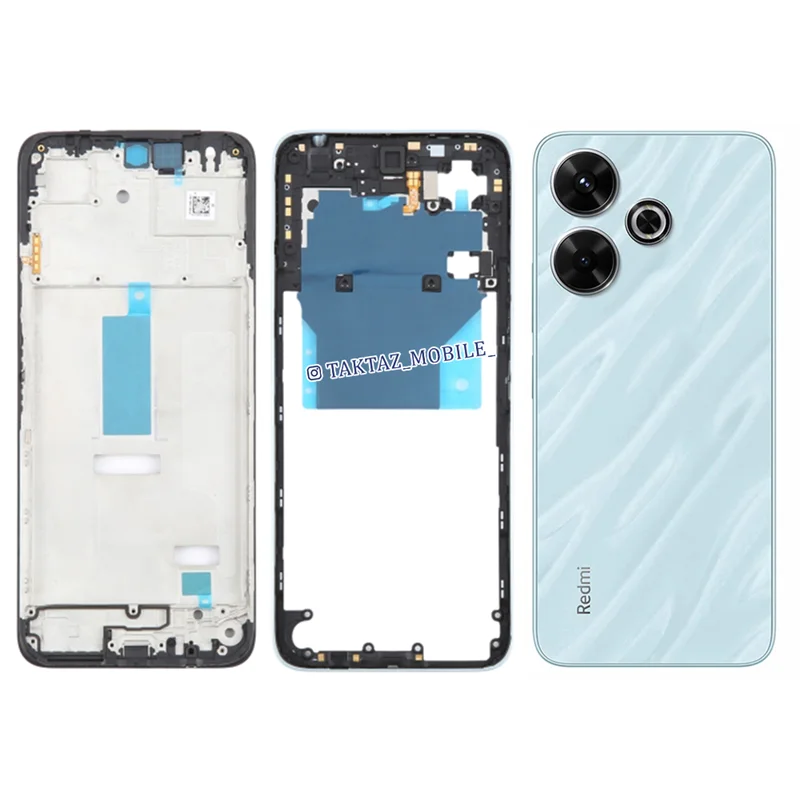 قاب و شاسی شیائومی Xiaomi Redmi 13 دارای سه تیکه درب پشت، فریم ال سی دی یا شاسی زیر ال سی دی، شاسی دور یا همون بک میدل میباشد.